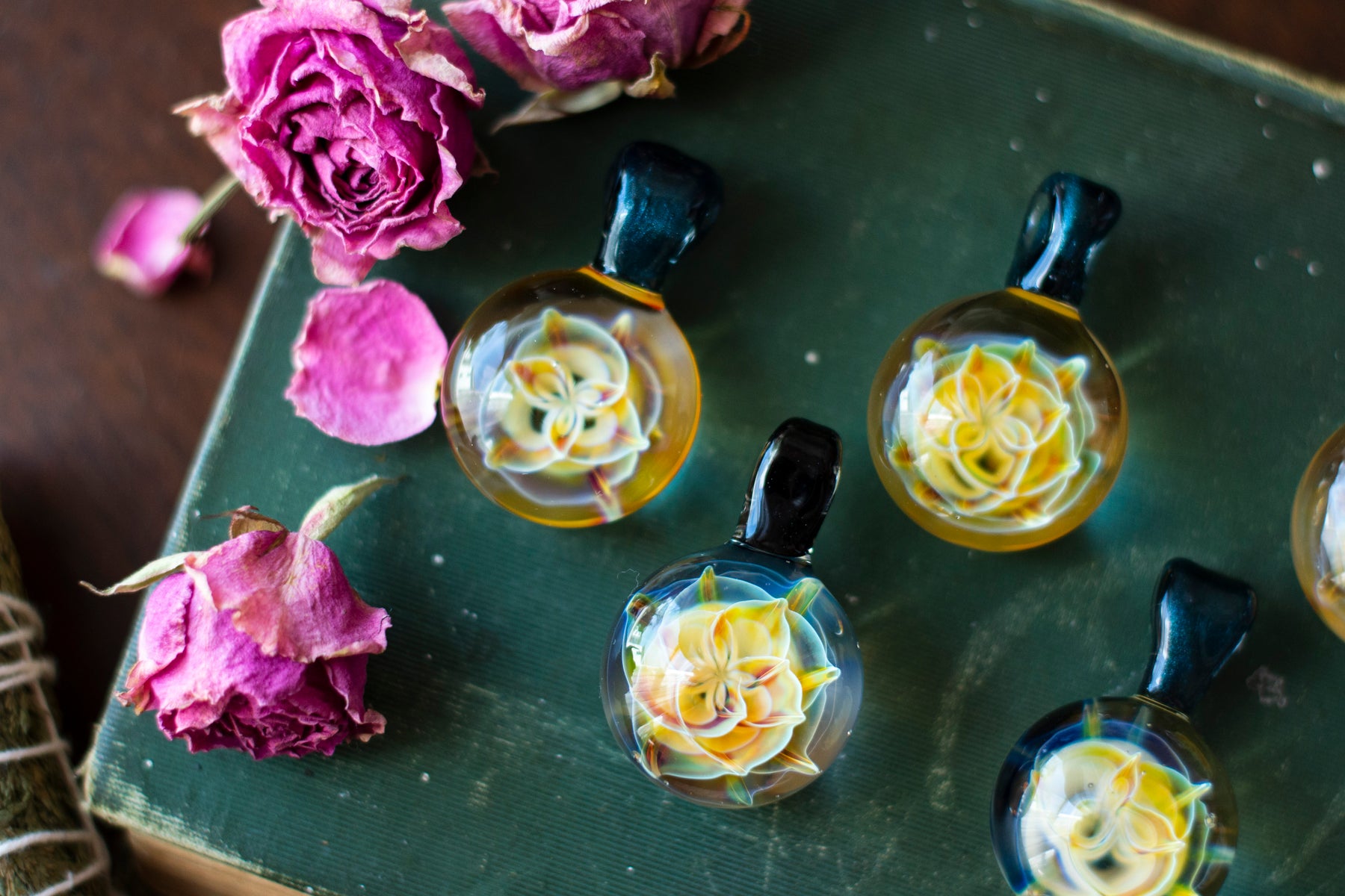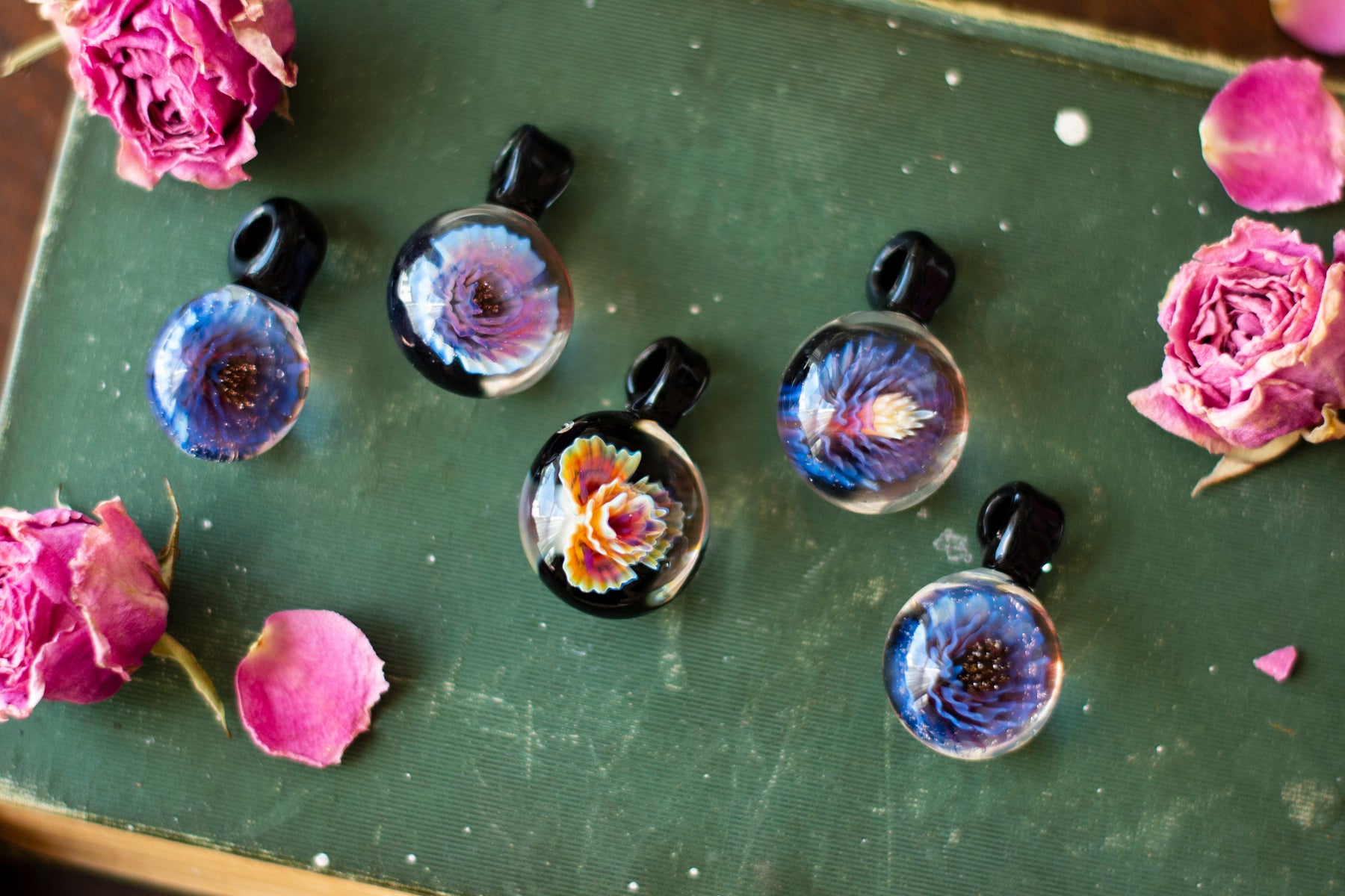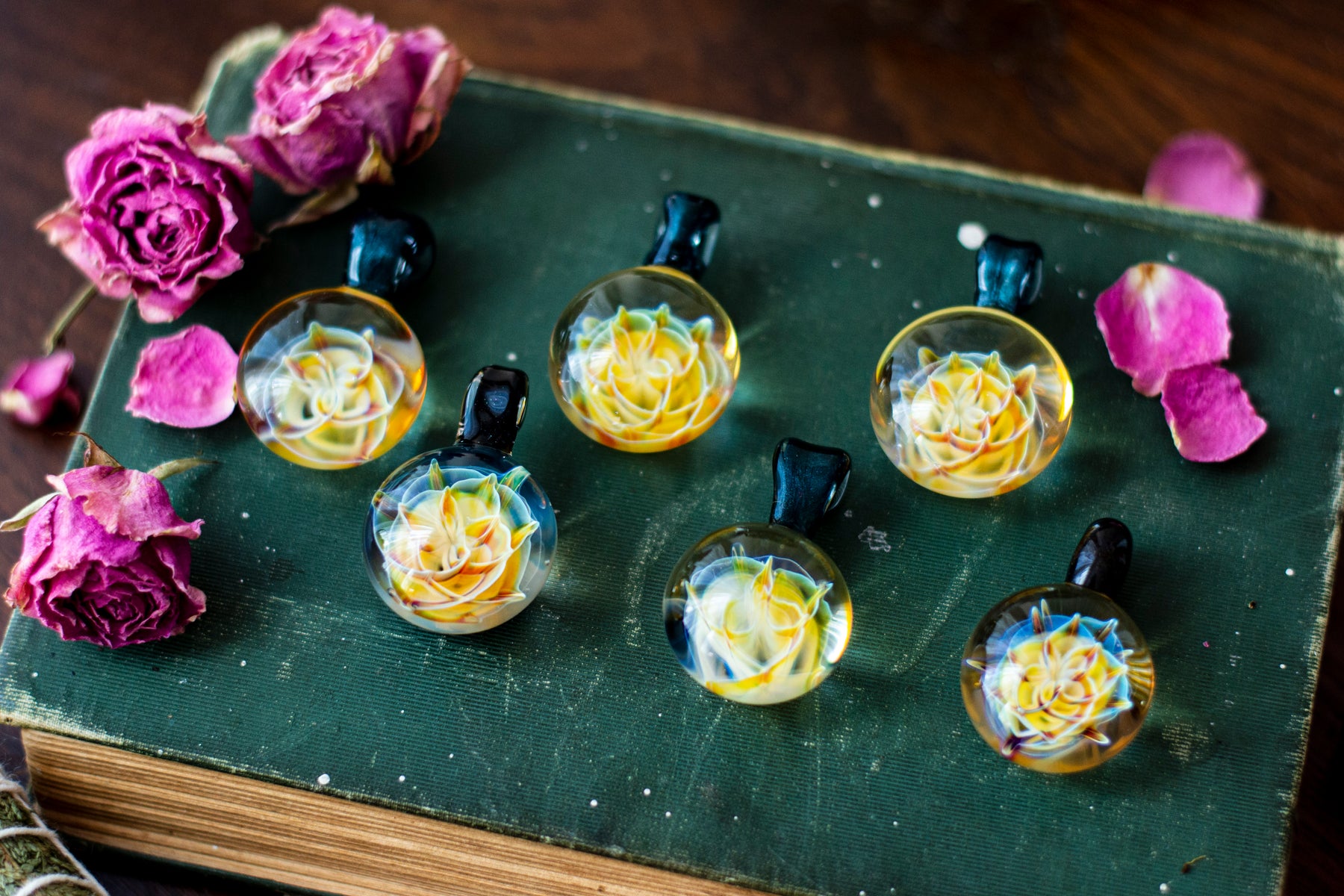Each pendant is handblown by a local Appalachian glassblower, making every piece entirely unique. Crafted with fire, tradition, and intention, no two are alike. Strung on soft suede cording for an grounding.