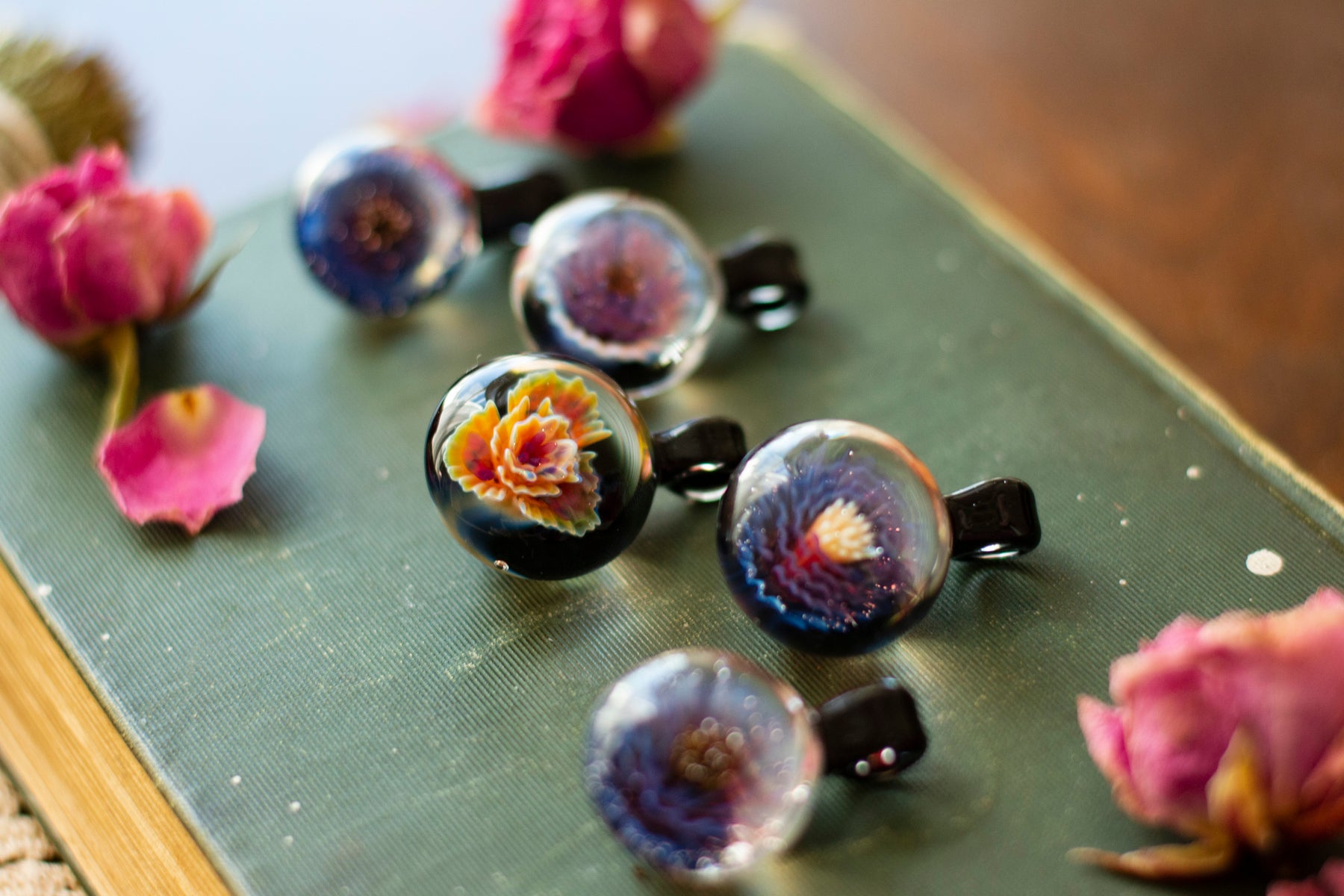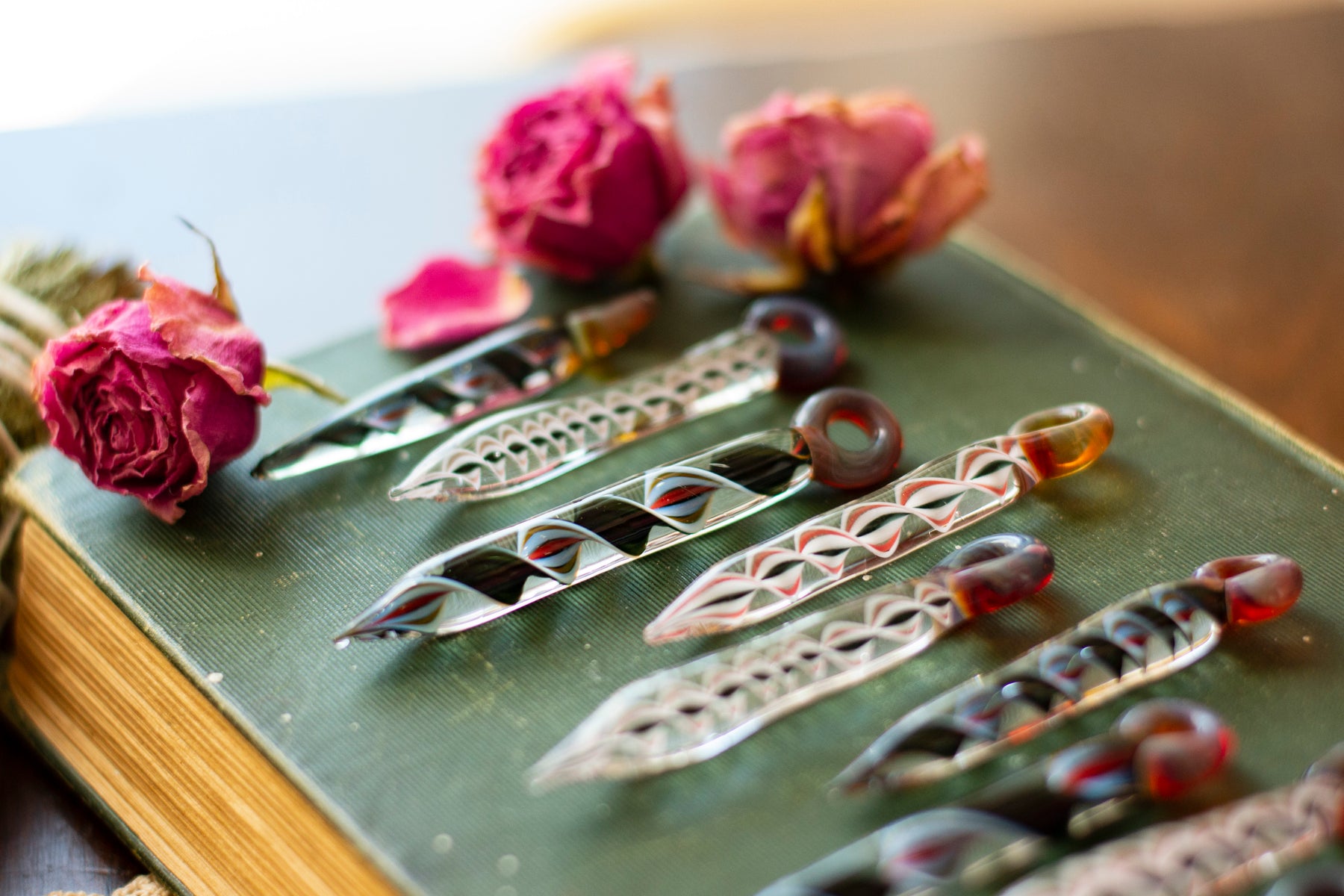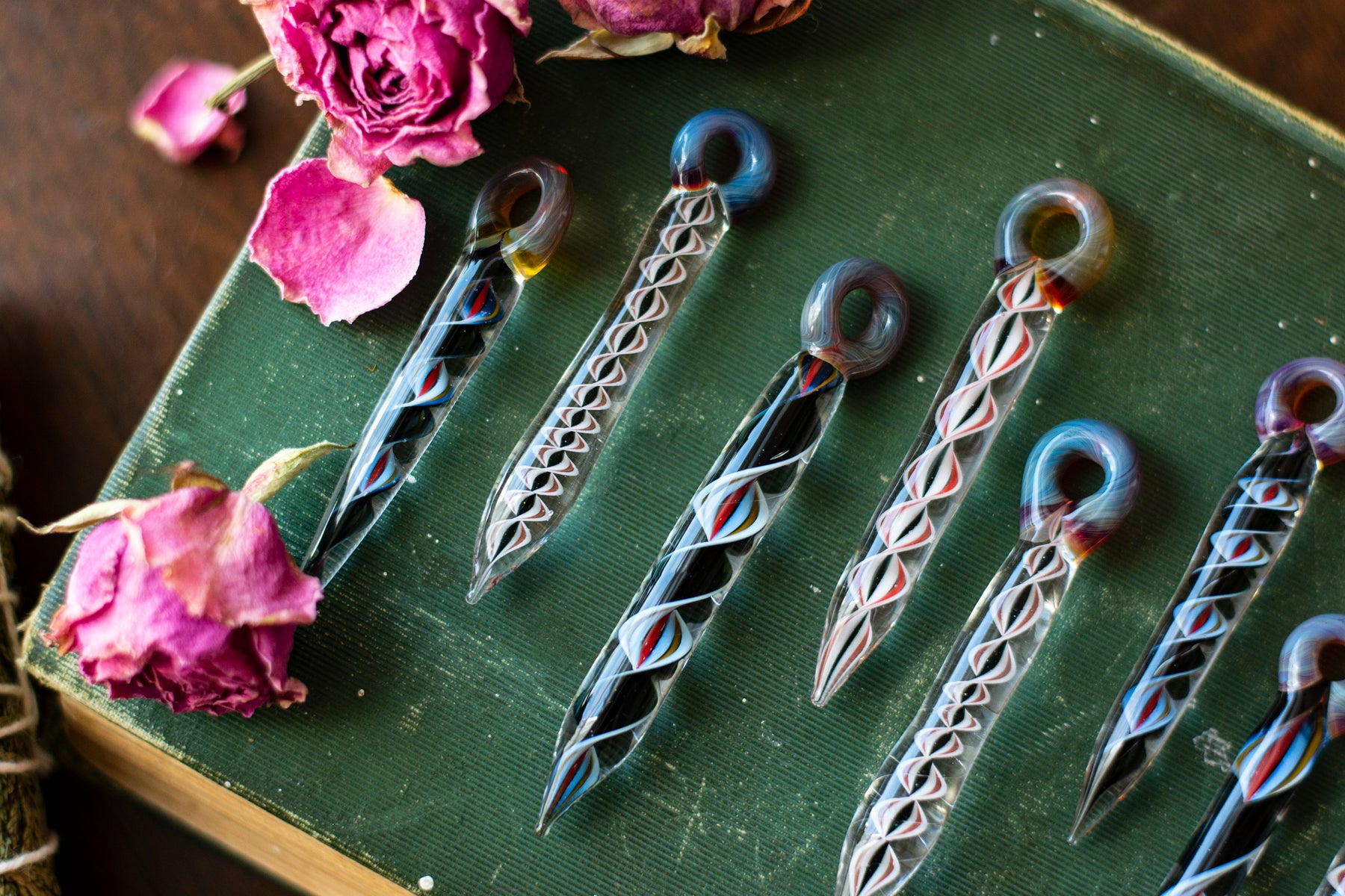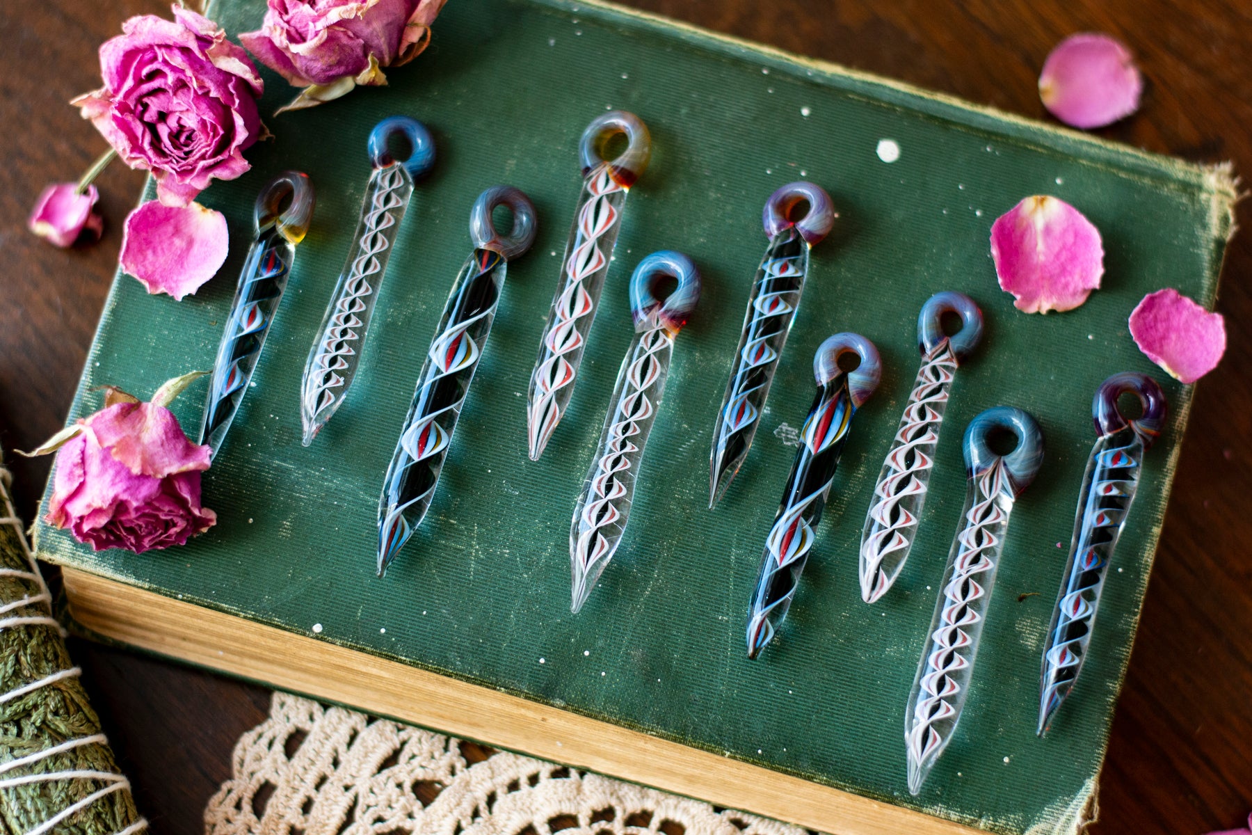 Each pendant is handblown by a local Appalachian glassblower, making every piece entirely unique. Crafted with fire, tradition, and intention, no two are alike. Strung on soft suede cording for an grounding.